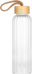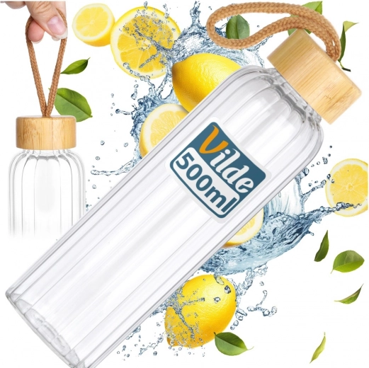 Bouteille d’eau en verre élégante de 500 ml avec bouchon en bambou et dragonne en tissu pour un transport facile. Fabriquée en verre borosilicaté résistant aux chocs thermiques, elle convient aux boissons chaudes et froides. Grâce à son joint en silicone, la bouteille est parfaitement étanche et son verre rainuré assure une prise en main ferme et un look moderne. Compatible lave-vaisselle (sans le bouchon).