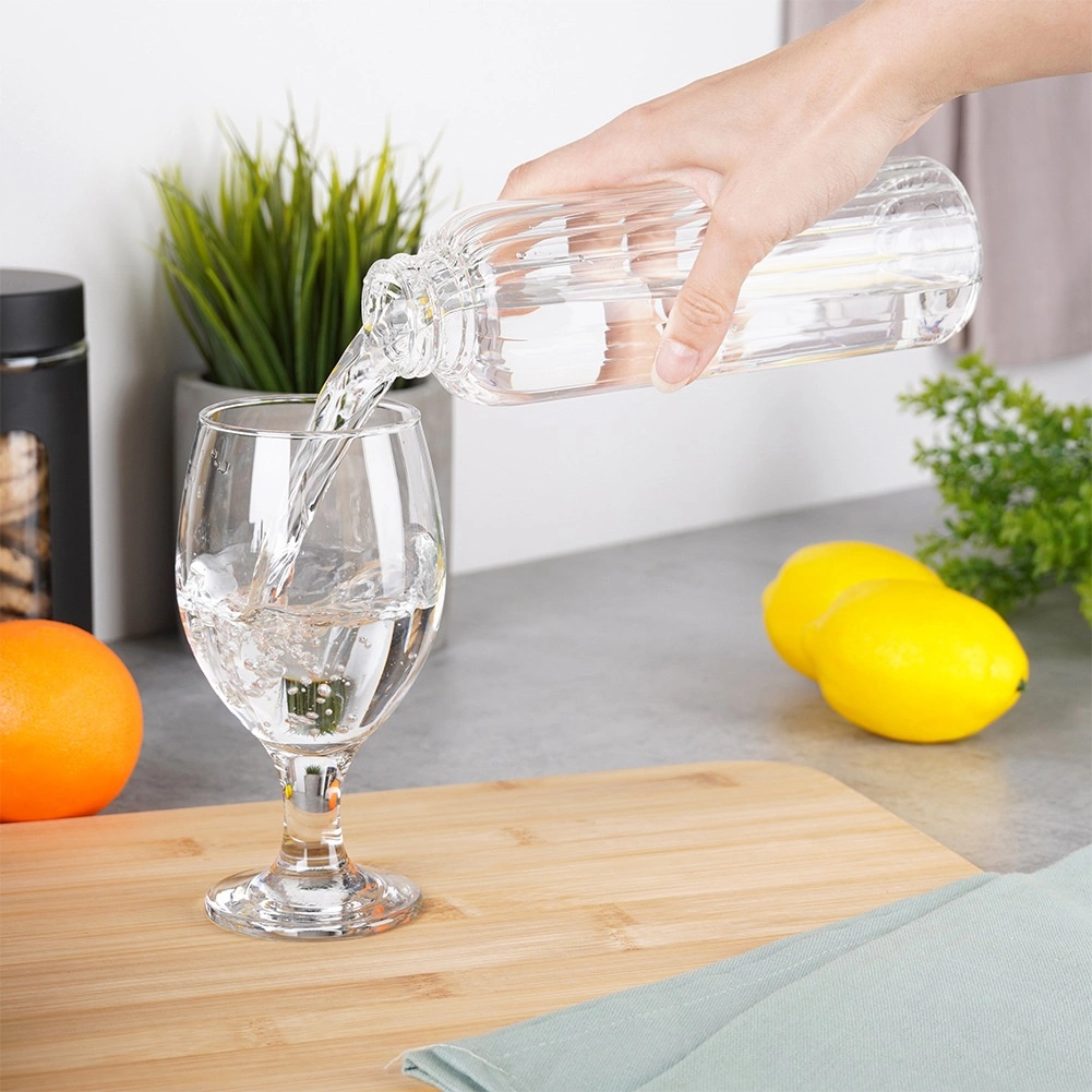 Les rainures verticales du verre améliorent l’adhérence et confèrent à la bouteille un look moderne adapté au bureau comme aux déplacements.