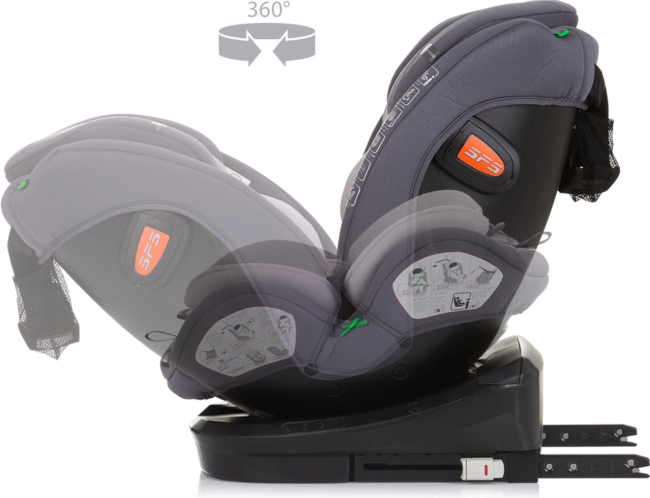 Le CHIPOLINO Volare i‑Size évolue avec votre enfant du nouveau‑né jusqu’à 150 cm de taille. Grâce à la base à rotation à 360°, l’attache et le passage entre la position dos à la route (40–105 cm) et face à la route (à partir de 100 cm) sont rapides et confortables. ISOFIX et Top Tether assurent un ancrage ferme et sécurisé, tandis que les flancs renforcés offrent une excellente protection contre les chocs latéraux.