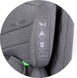 - ISOFIX + Top Tether pour 76–105 cm ; pour 100–150 cm, possibilité d’attacher avec la ceinture 3 points du véhicule (avec/sans ISOFIX)
