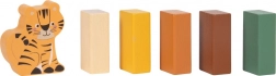Briques colorées, cadre stable, deux maillets et figurine de tigre – le tout en bois 100 % FSC® avec surface lisse.