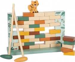 Construisez un mur avec les briques en bois colorées, placez le petit tigre en sentinelle au sommet, puis, à tour de rôle, poussez les blocs à l’aide des maillets – mais doucement, pour que le mur ne s’écroule pas ! Ce jeu d’équilibre convivial est parfait pour les enfants comme pour les adultes et apporte suspense, rires et entraînement des compétences à chaque tour.