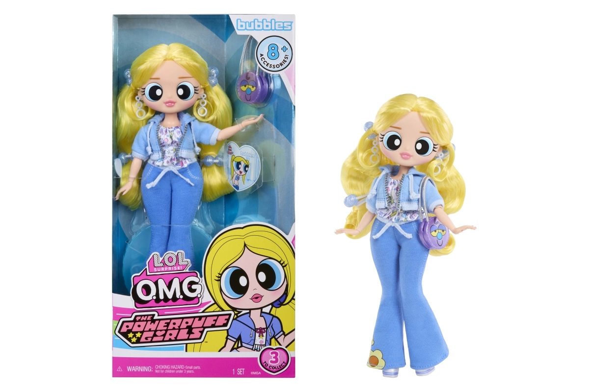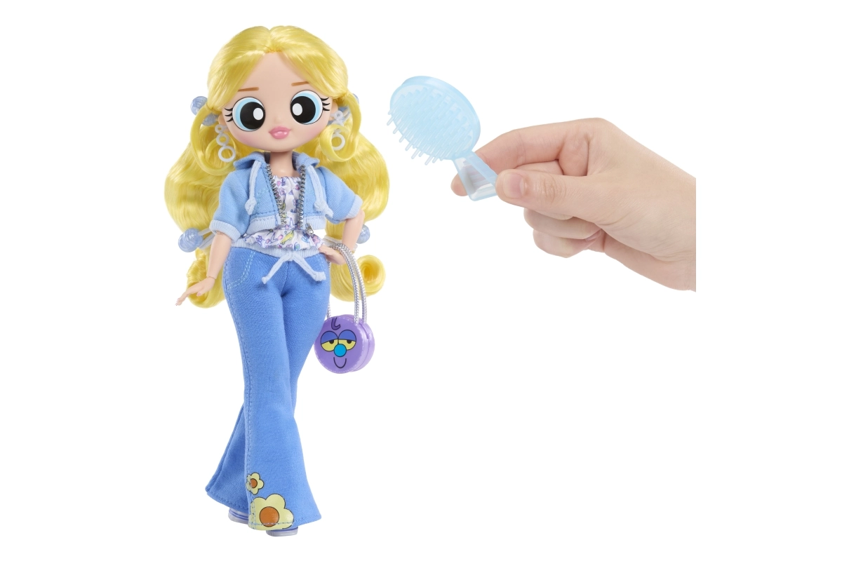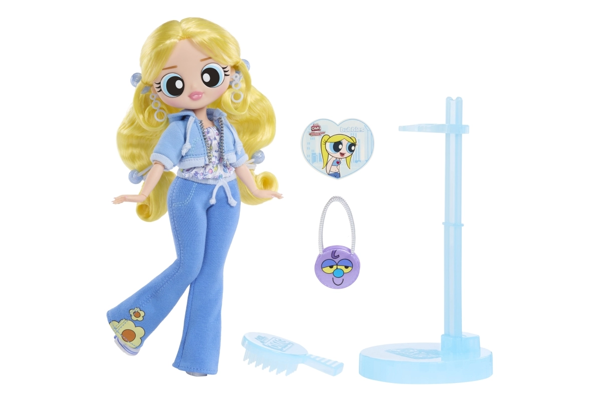 Découvre la magie de la collaboration légendaire L.O.L. Surprise! et LES SUPER NANAS. La poupée Bubbles brille dans une tenue bleue, finement détaillée, avec des éléments floraux et un sac iconique. Grâce à ses membres articulés, elle est parfaitement positionnable et prête pour les shootings et défilés de mode. Tu peux coiffer ses longs cheveux blonds avec la brosse incluse.