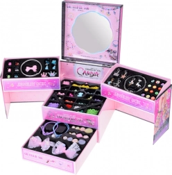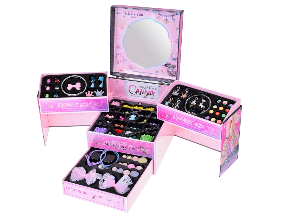 Une boîte à bijoux pliante magique avec perles, breloques et accessoires pour cheveux transforme chaque petite coquette en créatrice de sa propre beauté. Grâce à trois niveaux de rangement, à un miroir intégré et à un riche équipement, elle permettra de créer des bracelets, des colliers et des coiffures originaux. Un contenu riche, une organisation pratique et un soutien à la créativité et à la motricité fine font de ce set un cadeau idéal pour un divertissement quotidien.