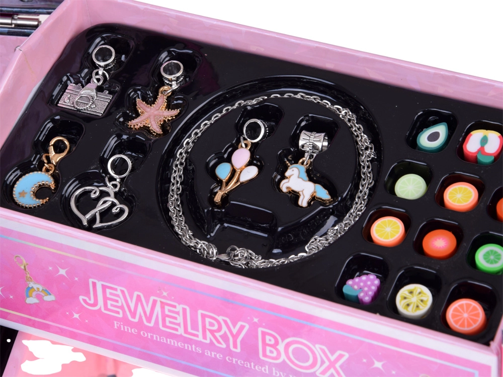 - Boîte à bijoux pliante pour enfants avec perles DIY et accessoires pour cheveux