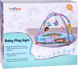 Grâce aux jouets amovibles et repositionnables, l’environnement se renouvelle facilement pour maintenir l’attention de l’enfant. Le tapis est doux, stable et agréable au toucher, adapté pour être allongé sur le ventre ou sur le dos, et accompagne l’enfant de l’observation des jouets à ses premières positions assises et ses premiers déplacements.
