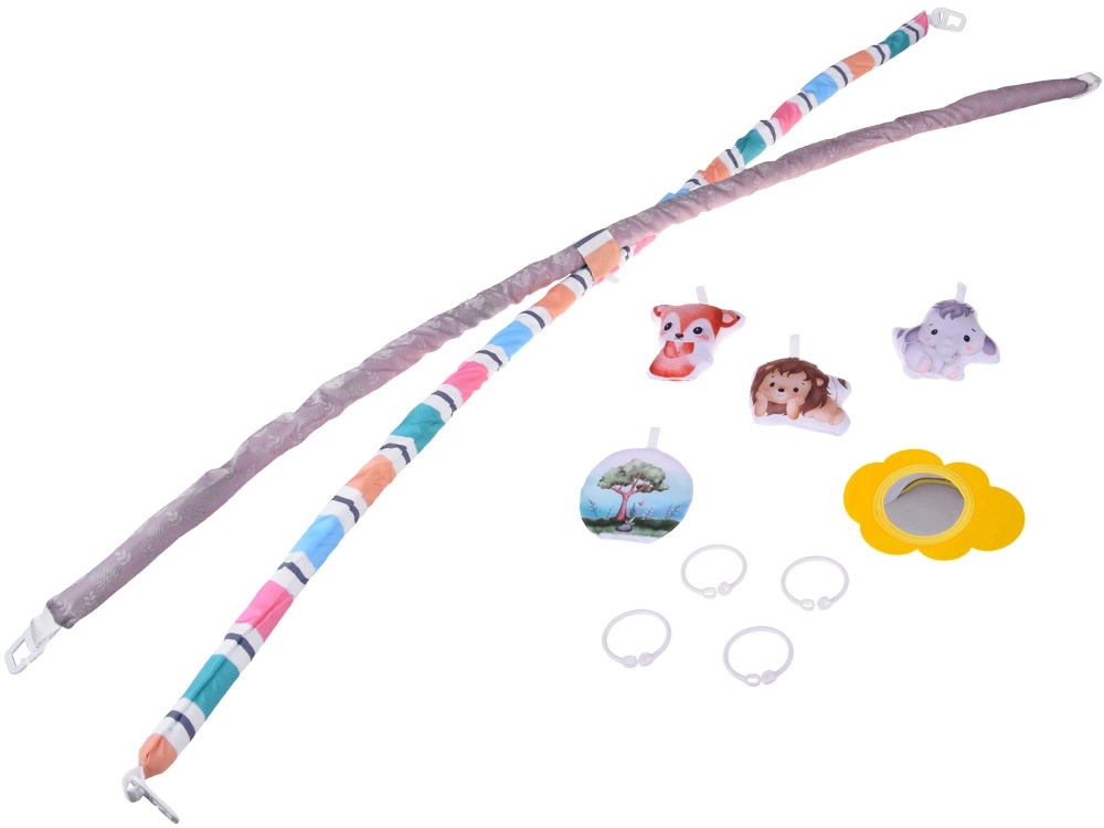 Deux arches rembourrées et flexibles, avec des peluches suspendues et un miroir, encouragent bébé à s’étirer, saisir et donner des coups de pied – idéal pour entraîner la coordination œil-main et renforcer les muscles.