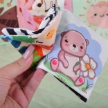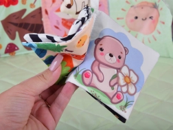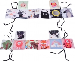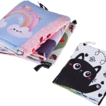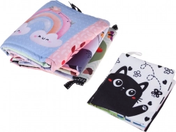 Livres en tissu légers avec motifs colorés et contrastés et miroir intégré, favorisant l’attention visuelle, la curiosité et les premières interactions de bébé.