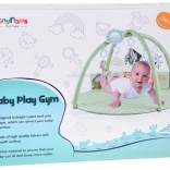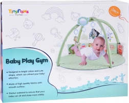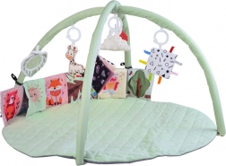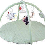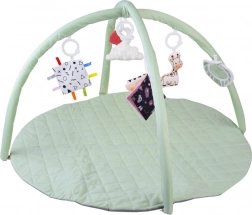 Ce tapis rond, délicatement rembourré, dans une teinte menthe pastel, crée un espace sûr et confortable pour les découvertes quotidiennes. Deux arches flexibles à détachement simple permettent un entretien rapide et un pliage compact pour voyager. Des textures variées, des éléments bruissants et des motifs contrastés développent naturellement la vue, l’ouïe et le toucher, tandis que les jouets suspendus motivent à s’étirer, donner des coups de pied et se retourner.