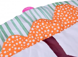 Ce grand tapis circulaire pour bébé offre une surface rembourrée confortable et un usage polyvalent : en nid d’éveil avec arches pour suspendre des jouets ou en tapis autonome pour le jeu libre et les exercices sur le ventre. Les motifs à fort contraste, les textures variées et les sons doux stimulent naturellement les sens et développent la motricité fine et globale.
