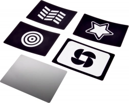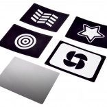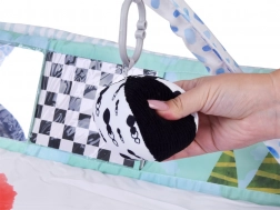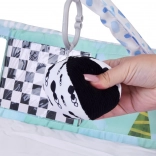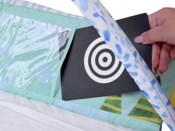 Fort contraste, textures variées, éléments bruissants et hochets stimulent la vue, l’ouïe et le toucher. Le miroir et les cartes encouragent l’observation et la concentration de bébé.