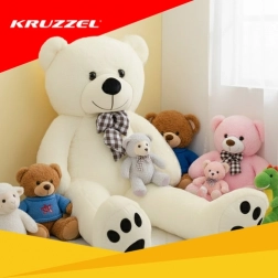 Le gigantesque ours en peluche KRUZZEL 180 cm impressionne au premier regard – sa taille crée un véritable « effet waouh ». La teinte crème (écru), le petit museau brodé, les yeux brillants et le ruban élégant lui confèrent une allure amicale et réaliste. Son corps moelleux est agréable au toucher, souple en position assise comme allongée et sert parfaitement de jouet à câliner, coussin et décoration.