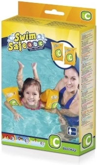 Brassards gonflables Swim Safe jaunes, 2 chambres, 25 x 15 cm, en boîte 12 x 19,5 cm, pour 3 à 6 ans