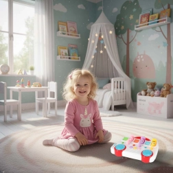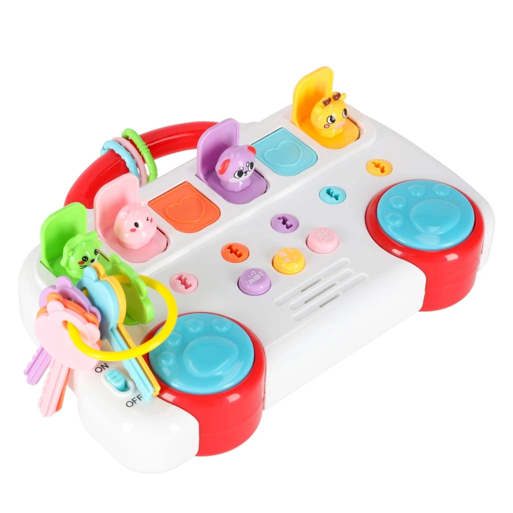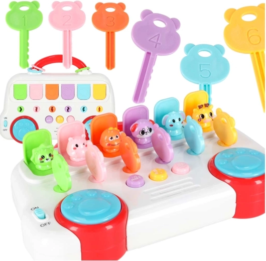 L’autobus éducatif musical ravira les enfants avec ses clés colorées, ses sons amusants et ses adorables animaux. Chacun des six animaux est caché derrière une petite porte – il suffit de faire correspondre la clé au numéro et à la couleur et, en la tournant, l’animal surgit. Le jouet développe naturellement la logique, la coordination main-œil et la reconnaissance des chiffres et des couleurs.