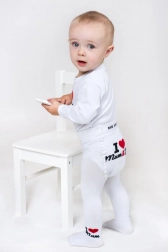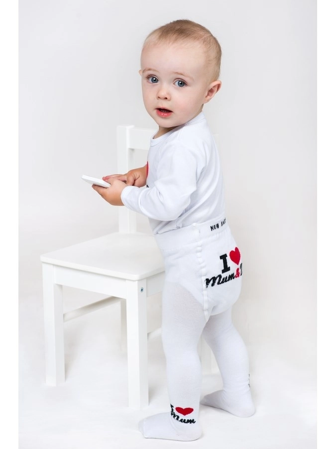Découvrez le confort et la qualité avec les collants pour enfants NEW BABY en blanc. Grâce à la forte teneur en coton, ils sont doux pour la peau des enfants, et la matière extensible s’adapte parfaitement pour offrir un port confortable tout au long de la journée. Le charmant motif I Love Mum et I Love Dad en fait un excellent complément à la garde-robe de chaque petit explorateur.
