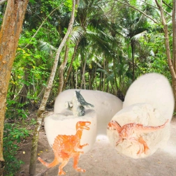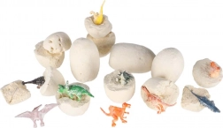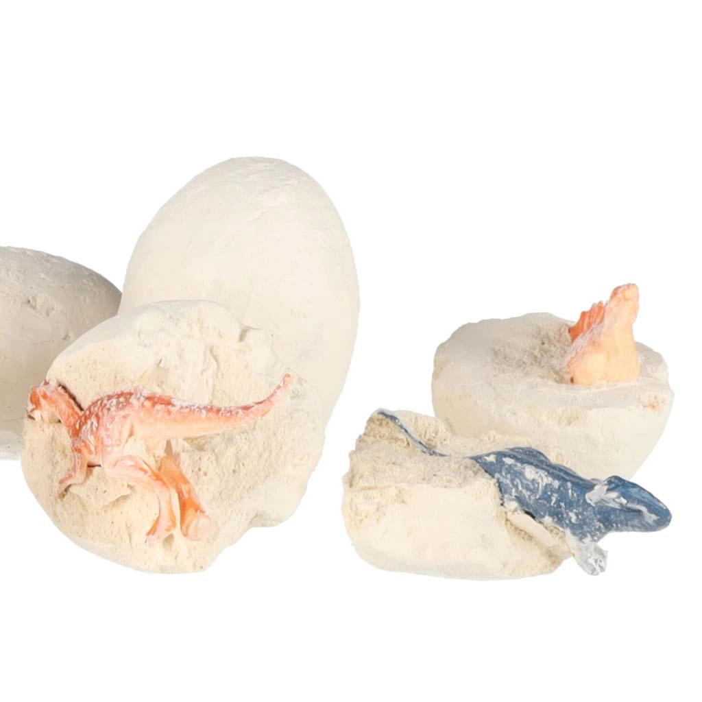 Chaque œuf en plâtre cache une mini-figurine colorée d’un dinosaure différent. Les enfants vivront douze aventures distinctes et composeront leur propre collection.