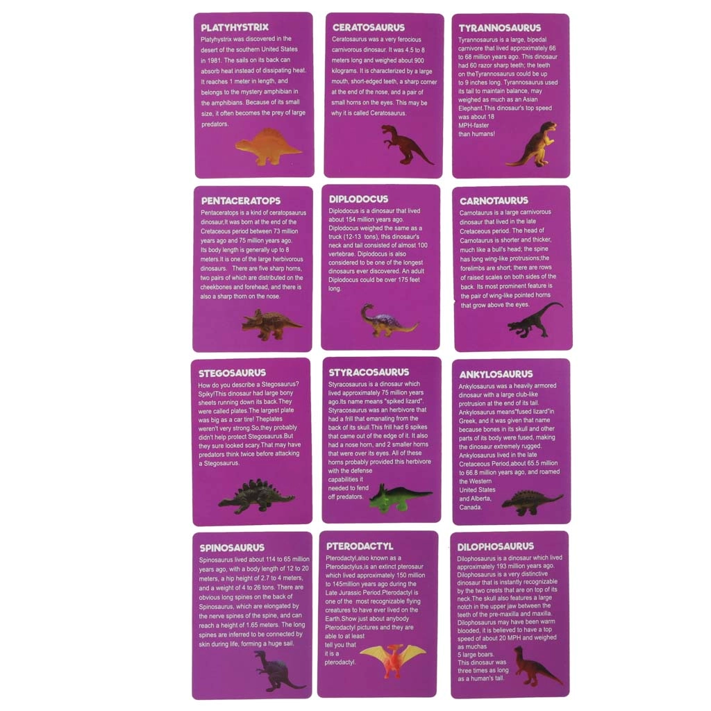 Les cartes éducatives fournies, avec descriptions des dinosaures, favorisent la découverte, élargissent les horizons et relient l’amusement à de vrais faits.