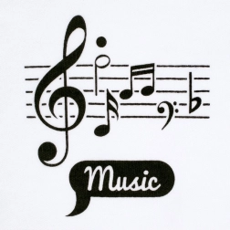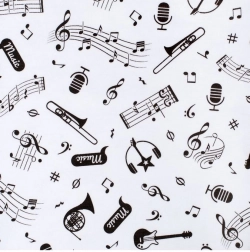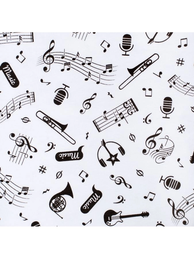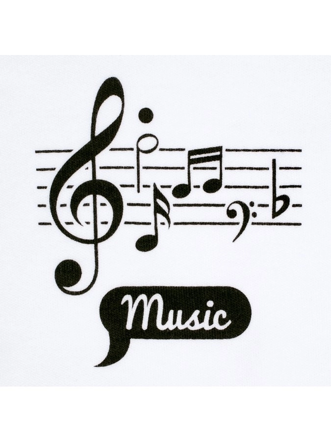 - Coloris uni, imprimé de petites notes sur les manches, inscription Music