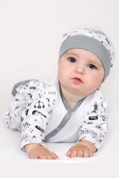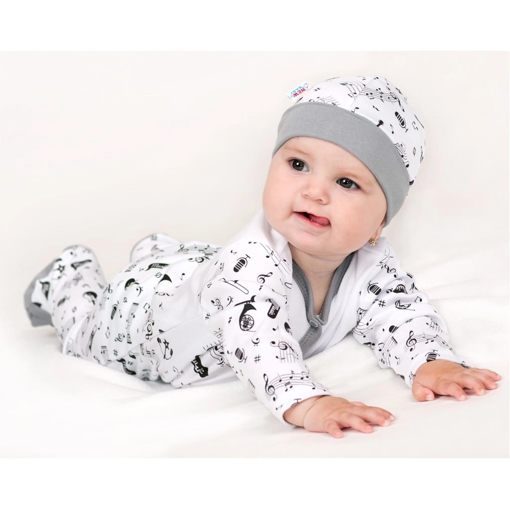 Le design épuré est relevé par des manches imprimées de petites notes et l’inscription Music, qui apportent une touche ludique à la tenue. Les manches se retroussent facilement, pour s’adapter à la météo du moment et aux besoins de bébé.