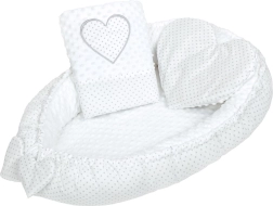 Nid bébé de luxe avec petit oreiller et couette New Baby Minky Cœur blanc