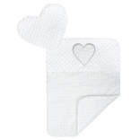 L’ensemble comprend un petit oreiller en forme de cœur et une couette toute douce assortie au design – idéal pour le lit comme pour la poussette.