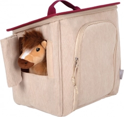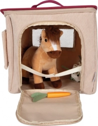 Le sac robuste en velours côtelé avec fermeture éclair se transforme instantanément en écurie. Grâce à la poignée, les enfants l’emportent partout – jeu idéal à la maison comme en déplacement.