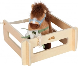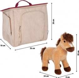 Inclus: petit cheval en peluche avec harnachement (selle, couverture, bride), nourriture (petite carotte, filet à foin) et accessoires de nettoyage (petit récipient pour crottins, râteau, pelle, crottins en bois). L’ensemble est prêt à l’emploi dès le déballage et parfait pour les voyages grâce à sa conception légère et résistante.