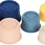 Les gobelets s’emboîtent pour gagner de la place. Le matériau résistant se nettoie aisément et convient au jeu à la maison comme en extérieur.