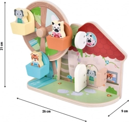 Ce jouet moteur coloré small foot transforme la chambre des enfants en un petit centre d’amusement. Les enfants adoreront faire tourner la grande roue grâce à la manivelle à mouvement fluide, installer les animaux en bois dans les cabines et découvrir les motifs derrière la porte colorée. Le jouet développe naturellement la motricité fine, la coordination œil–main et la pensée logique, tout en stimulant l’imagination et l’exploration autonome.