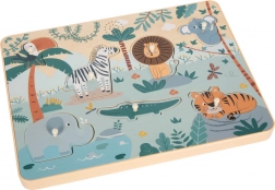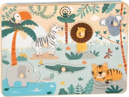 Découvrez l'apprentissage ludique des sons avec le puzzle en bois Small Foot Safari. Les enfants reconnaissent les formes et les animaux, et lorsqu'ils soulèvent une pièce, ils entendent un son réaliste. Des couleurs vives, 7 animaux et du bois FSC® de qualité développent la motricité, la logique et la perception. Fonctionne avec 2× AAA (non incluses).