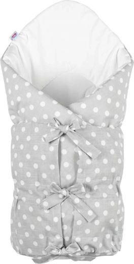 La couverture d’emmaillotage New Baby au style classique à lacets revient comme un choix éprouvé pour les premiers mois de bébé. Grâce à ses trois rangées de rubans, elle enveloppe bébé fermement et confortablement, procurant un sentiment de sécurité et aidant à un sommeil paisible. La housse douce en coton respecte les peaux sensibles et le design gris à pois s’accorde facilement avec le trousseau.
