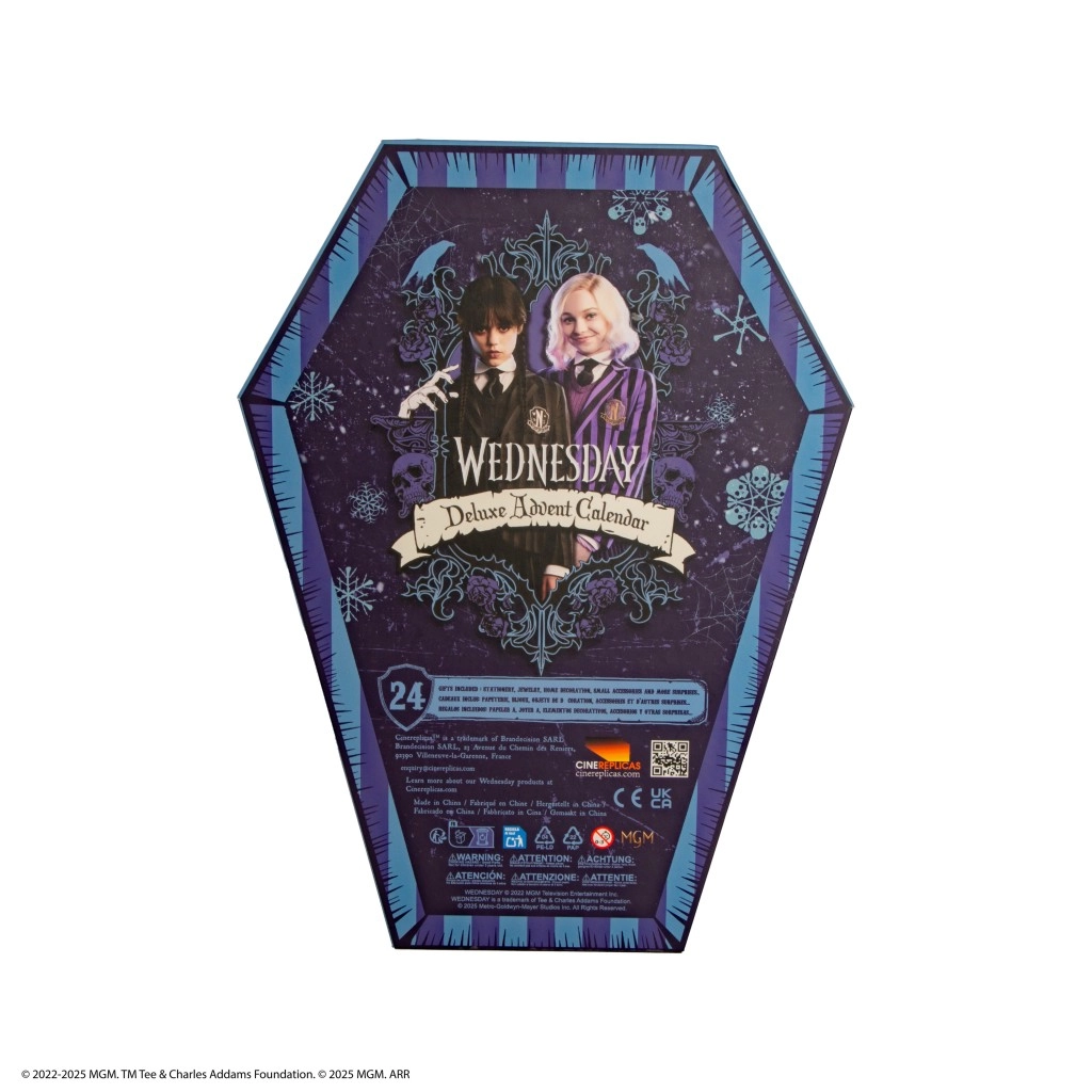Ce calendrier de l’Avent exclusif en forme de cercueil ravira tout fan de WEDNESDAY. À l’intérieur, vous trouverez des compartiments soigneusement conçus avec 24 surprises thématiques alliant divertissement, praticité et valeur de collection. Grâce à son design accrocheur, le calendrier est idéal aussi comme cadeau décoratif pour les fêtes.