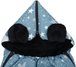 Pratique chancelière d’hiver New Baby à motif d’étoiles, garantissant à votre bébé chaleur, confort et sécurité dans la poussette comme dans le siège auto. Elle dispose d’ouvertures pour harnais 5 points, d’un zip sur tout le pourtour et d’une partie supérieure resserrée en capuche pour un confort maximal. Grâce à sa doublure intérieure en polaire de qualité et à son garnissage antiallergique, elle est idéale pour les jours froids.