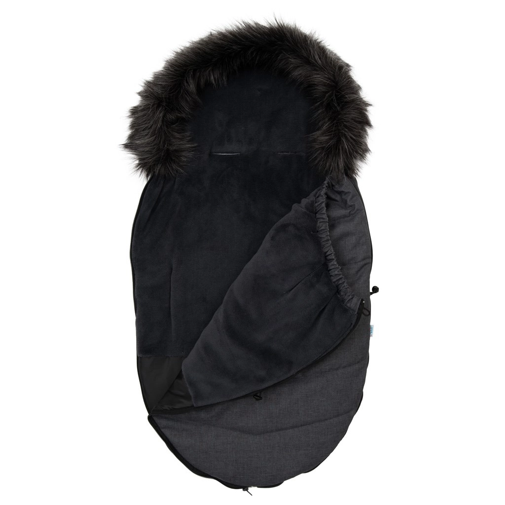 Grâce aux ouvertures universelles multipoints pour les harnais de sécurité, la chancelière est compatible avec la plupart des poussettes et certains sièges auto. Une fois la couche supérieure retirée, elle peut être utilisée comme doublure chaude pour poussette. La touche stylée est apportée par une capuche réglable terminée par une fausse fourrure amovible.