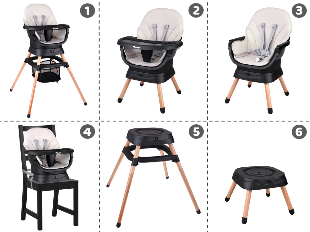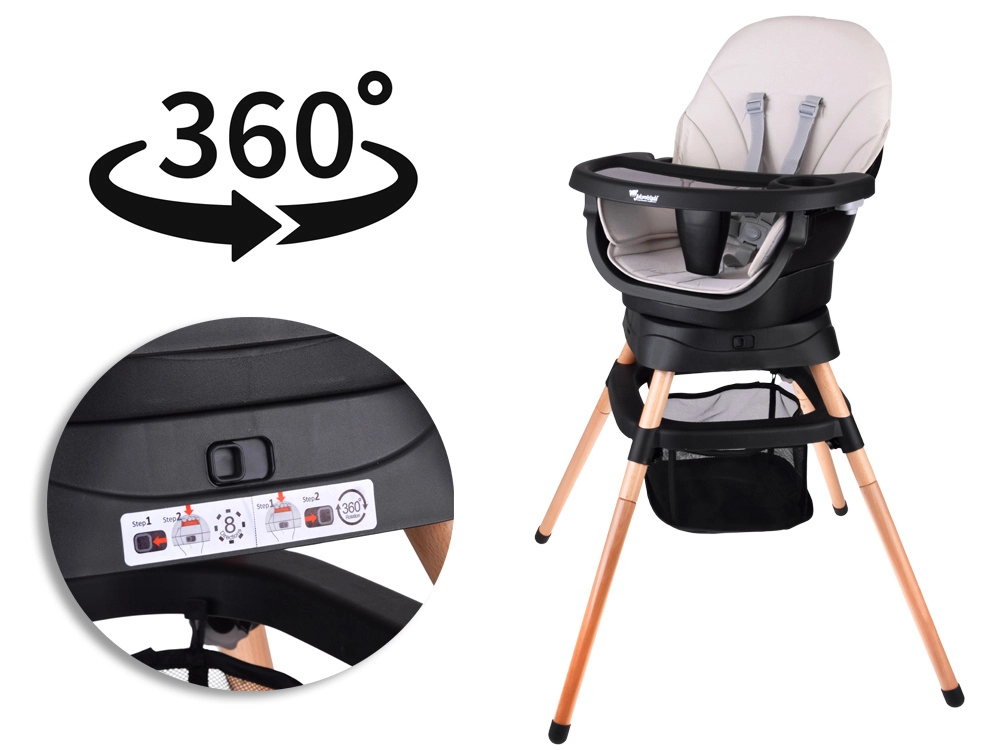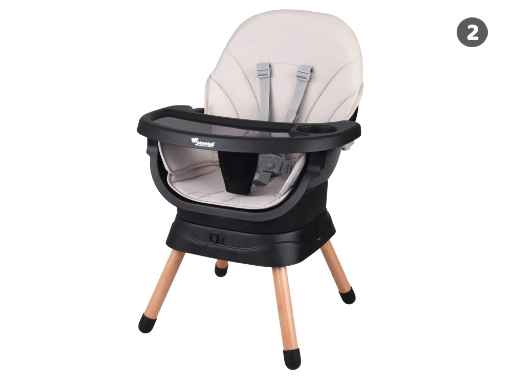 - Chaise haute avec plateau réglable et amovible