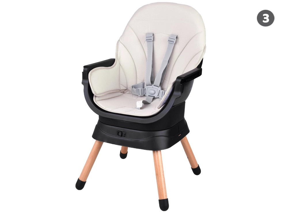 Moderne et ergonomique, cette chaise combine stabilité, sécurité et design modulable. Avec un simple système de clic, adaptez‑la aux besoins du moment – des premières purées jusqu’à l’assise et le jeu en toute autonomie. Son look minimaliste s’intègre à tous les intérieurs.