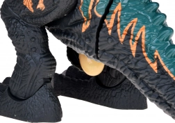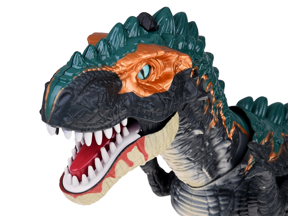 Le grand modèle du plus célèbre des dinosaures, le T‑Rex, séduit par ses détails : dents proéminentes, yeux réalistes, texture de surface rappelant la peau de dinosaure, griffes et excroissances dorsales. Une fois allumé, le T‑Rex avance, bouge la tête, les pattes avant et la queue et émet un rugissement impressionnant.