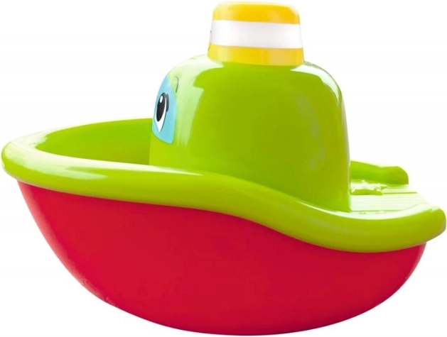 Après immersion et pression sous l’eau, le bateau libère par sa cheminée des bulles de mousse – un effet que les enfants adorent et qui anime chaque bain.
