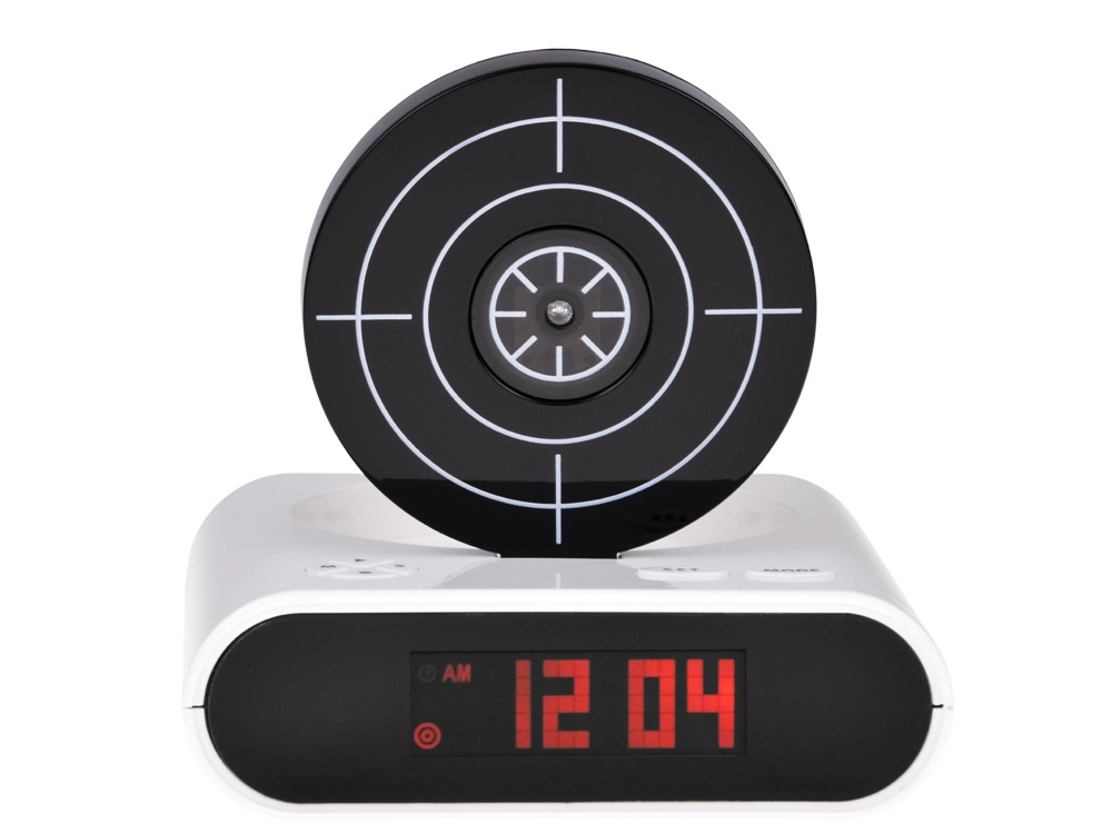 Fini les matins monotones. Lorsque l’alarme se déclenche, il suffit de viser la cible avec le pistolet et de toucher le centre – le réveil se tait uniquement après l’impact. Vous pouvez enregistrer votre propre son de réveil (du bruit de l’océan à votre techno préférée) ou utiliser l’alarme par défaut. Pour le divertissement et l’entraînement de la précision, 2 modes de jeu sont disponibles.