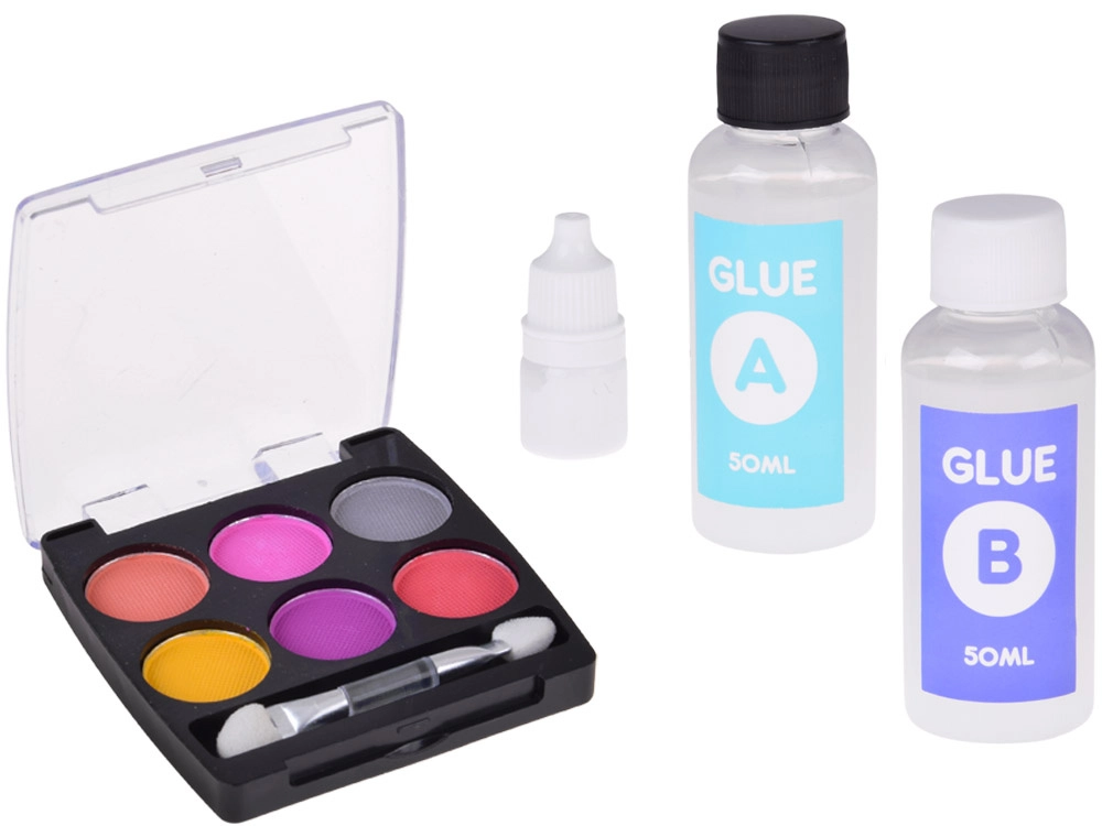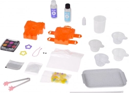 Le kit comprend moule, pince, bâton mélangeur, doseur, 2× colle, pigment, décorations, gants ainsi qu’un bol et un plateau pratiques pour créer proprement. Un mode d’emploi simple guide les enfants pas à pas – du mélange de la matière jusqu’à la décoration finale et la suspension.