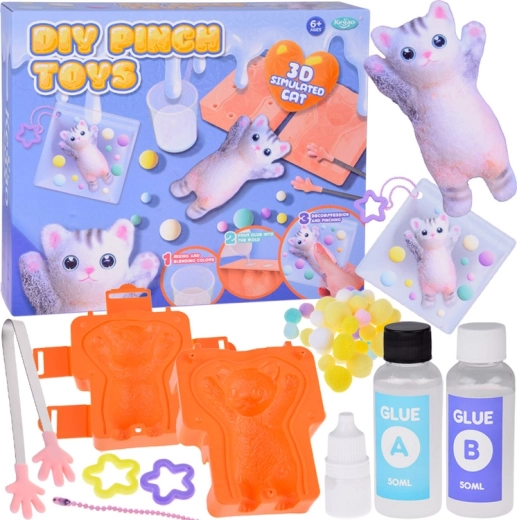 Découvrez un set DIY ludique grâce auquel les enfants créent eux‑mêmes un adorable porte-clés chat. Ils mélangent la matière, colorent, décorent avec des pompons, des étoiles et un “duvet” tout doux, puis placent le chat fini dans un sachet décoratif avec chaînette. Le résultat est un talisman antistress, moelleux et doux à emporter partout.