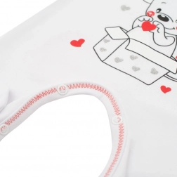 Les pressions sur l’épaule et entre les jambes permettent un habillage rapide sans stress inutile. Les bords colorés contrastés et le grand imprimé souris créent un design craquant qui plaira aux enfants comme aux parents.