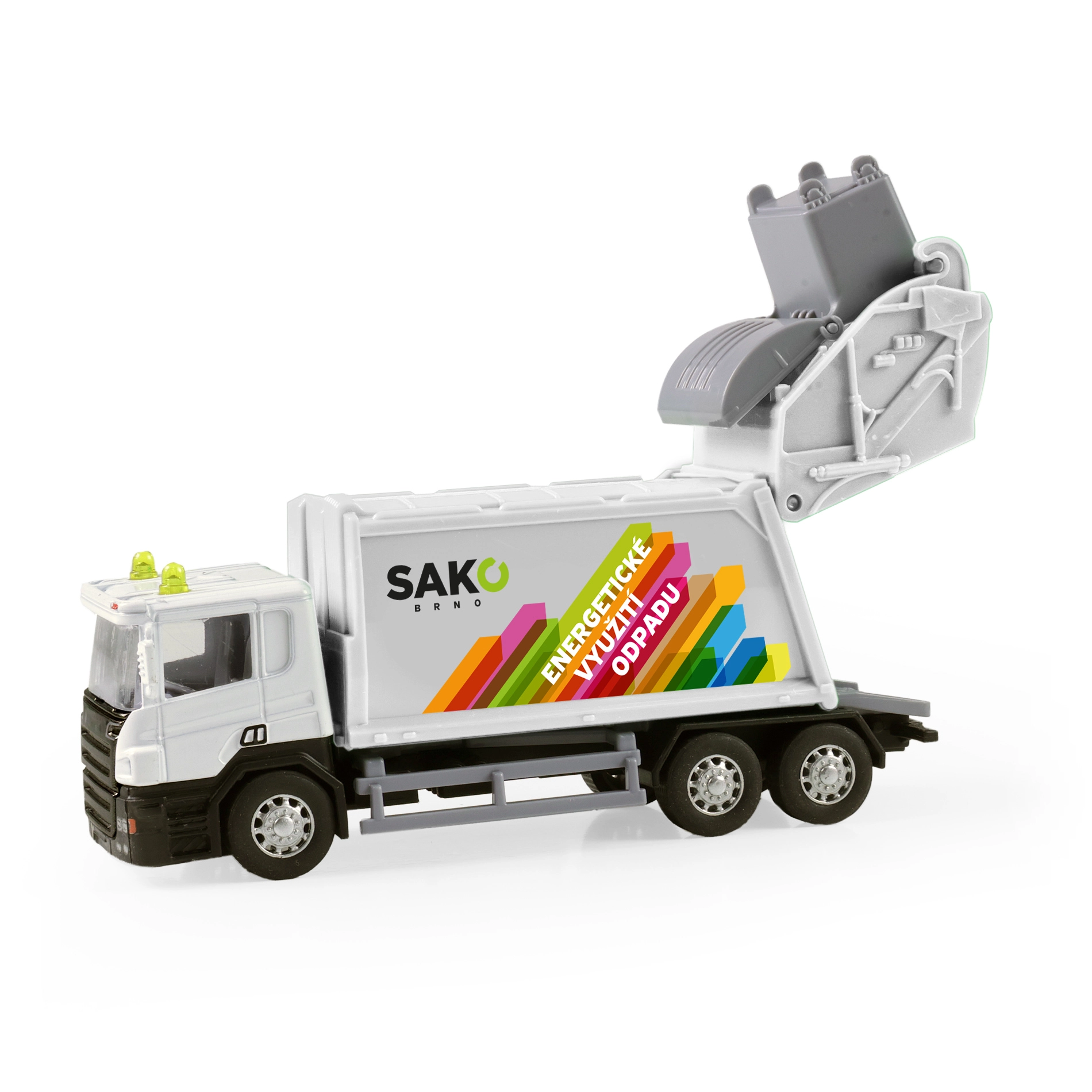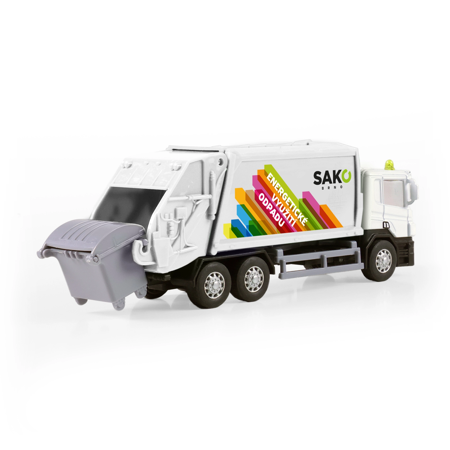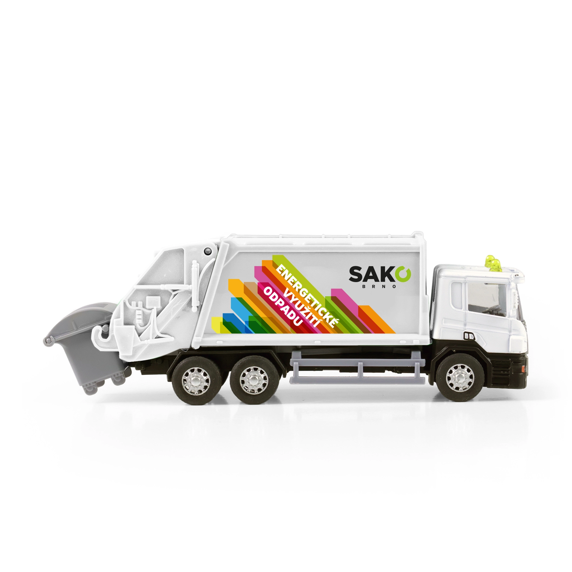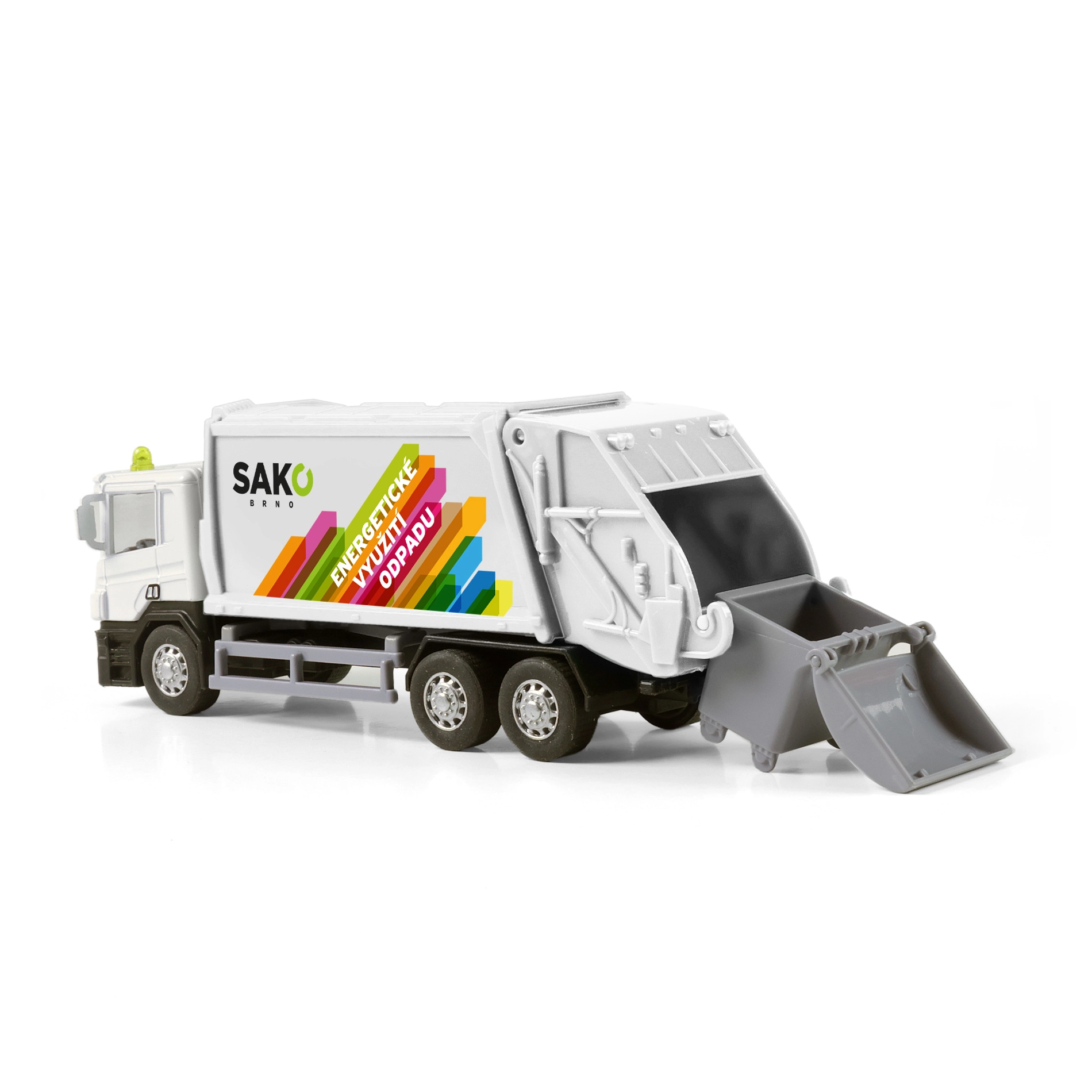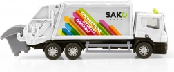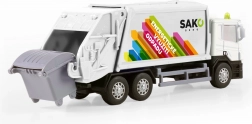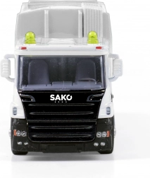 Profitez de nombreuses heures de jeu avec ce camion benne à ordures détaillé orné du logo SAKO. Le châssis en métal apporte de la solidité, tandis que la benne en plastique avec portes arrière basculantes permet un chargement et un déversement réalistes des déchets. Une poubelle ouvrante est incluse pour que les enfants puissent imiter la véritable collecte des ordures.
