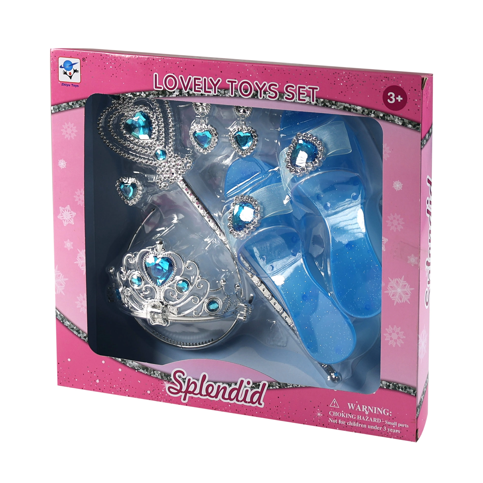 Le set inclut tiare, baguette, boucles d’oreilles et bague – le tout coordonné en bleu et argent pour un effet maximal.