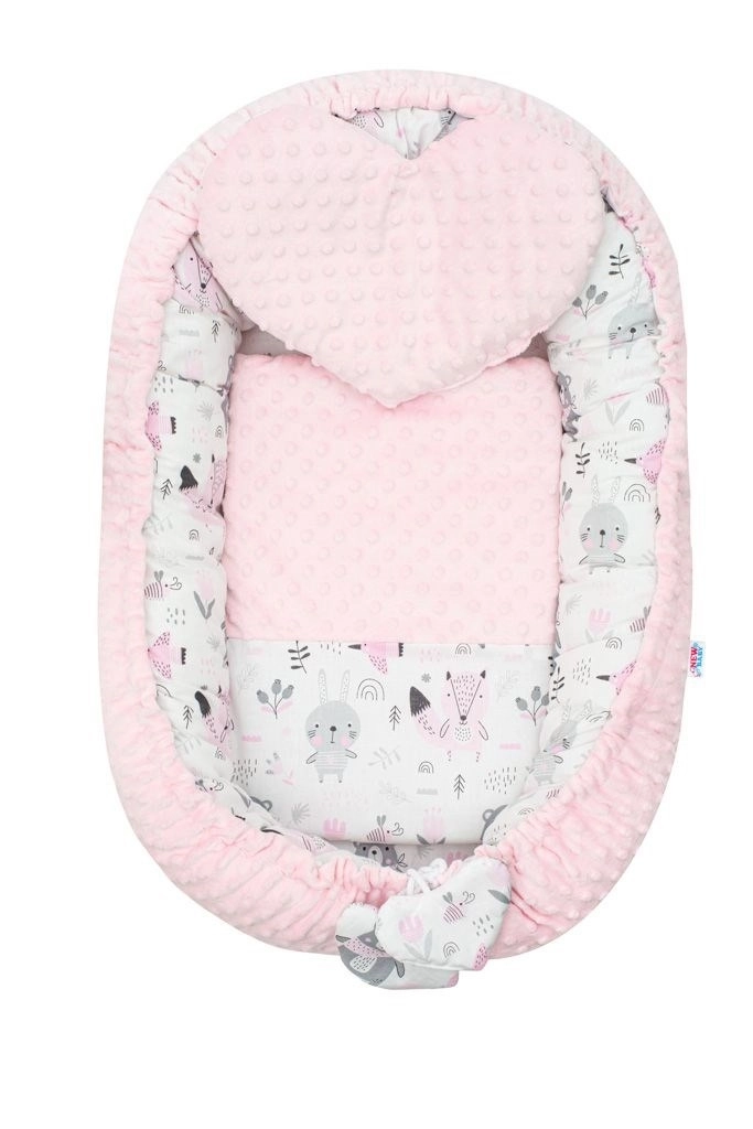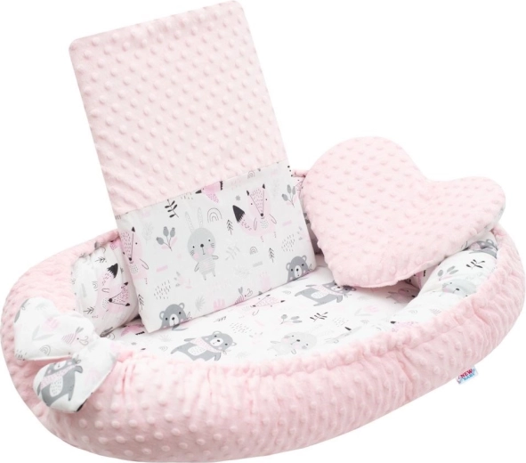 Offrez à votre bébé un environnement sûr et douillet avec ce nid réversible NEW BABY en tissu minky doux et 100 % coton. Il comprend un petit oreiller en forme de cœur et une couette, un cordon pratique pour régler la taille et des bords surélevés pour plus de confort et de sécurité. Idéal pour le lit, la poussette et le canapé. Minky doux, conception réversible, taille réglable, garnissage anti-allergique.