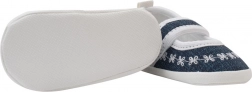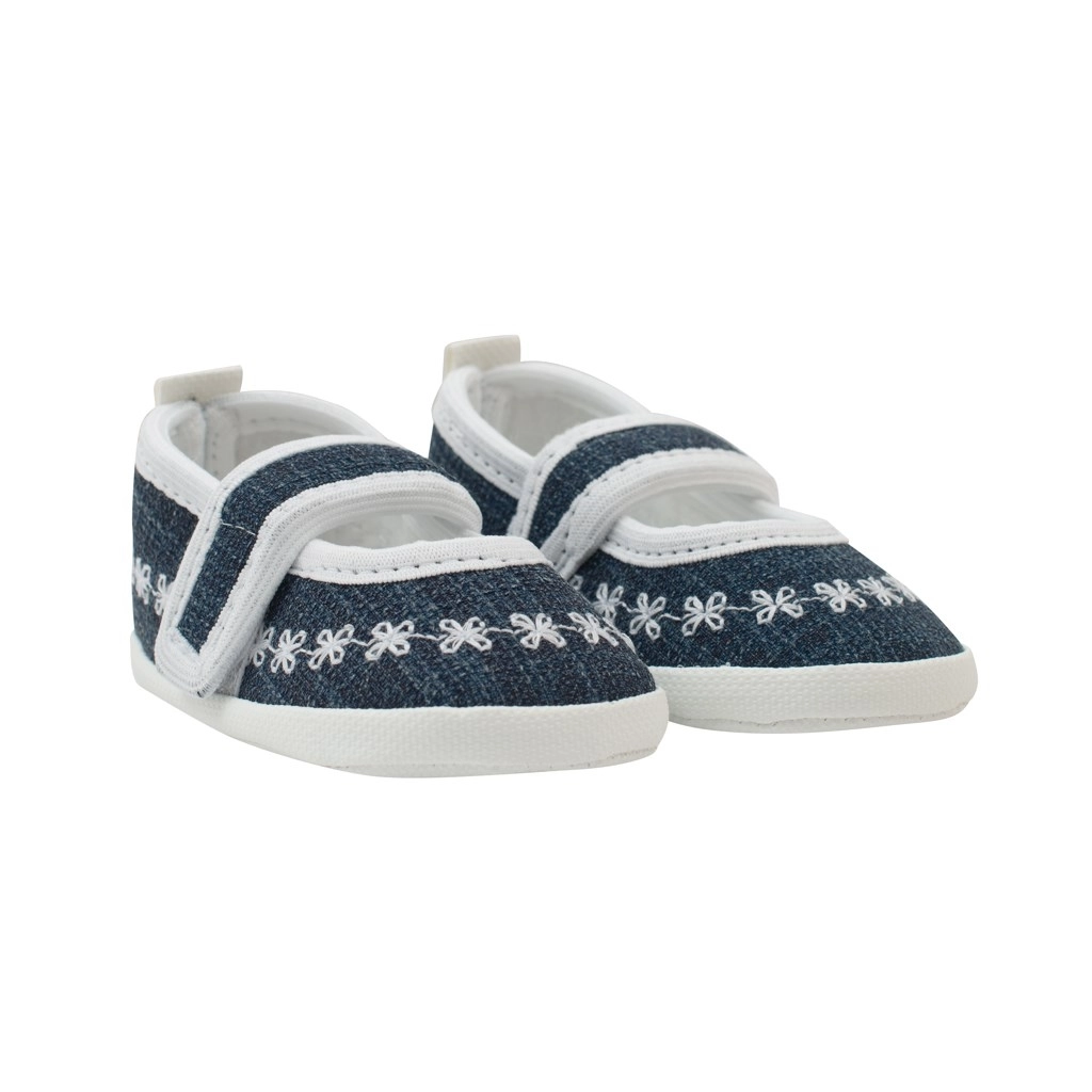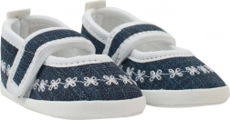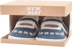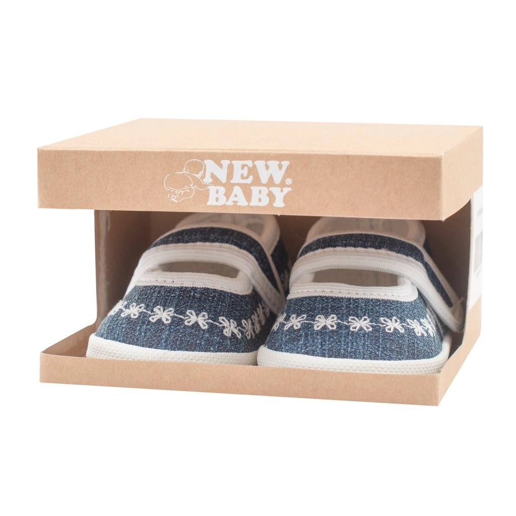 Chaussons pour bébé New Baby, confortables et légers, au style jean pour les tout-petits de 0 à 3 mois. Grâce à la fermeture à scratch, ils tiennent parfaitement, disposent d’un intérieur large pour une libre mobilité des orteils et d’une semelle fine et souple pour un confort maximal. Idéals comme premières chaussons pour la poussette ou la maison, mais non destinés à la marche.