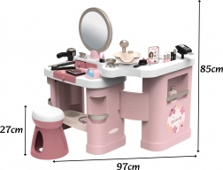 Le centre de beauté pour enfants SMOBY BEAUTY est un salon 3-en-1 complet pour petites stylistes et stylistes en herbe. Les enfants peuvent alterner les rôles de coiffeur, maquilleur et manucure et, grâce à l’équipement riche, imiter des gestes réels. Une structure stable, des espaces de rangement bien organisés et un tabouret (env. 27 cm) assurent un jeu confortable et sûr.