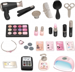 Le sèche-cheveux avec lumière et son et la lampe UV pour la manucure apportent une touche réaliste au jeu. Les autres accessoires sont sûrs et adaptés aux petites mains.