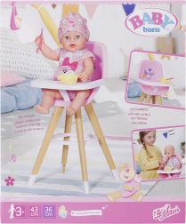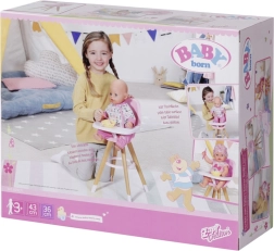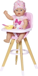 Une chaise haute stylée pour poupées BABY born au design nordique qui offre aux enfants un jeu créatif d’alimentation. Elle possède des pieds stables aspect bois, un siège rose confortable et une tablette amovible offrant suffisamment de place pour une assiette, un biberon et d’autres accessoires. L’adorable motif avec un ourson et un petit canard ravira les petits soigneurs, et la chaise convient aussi aux poupées plus petites.