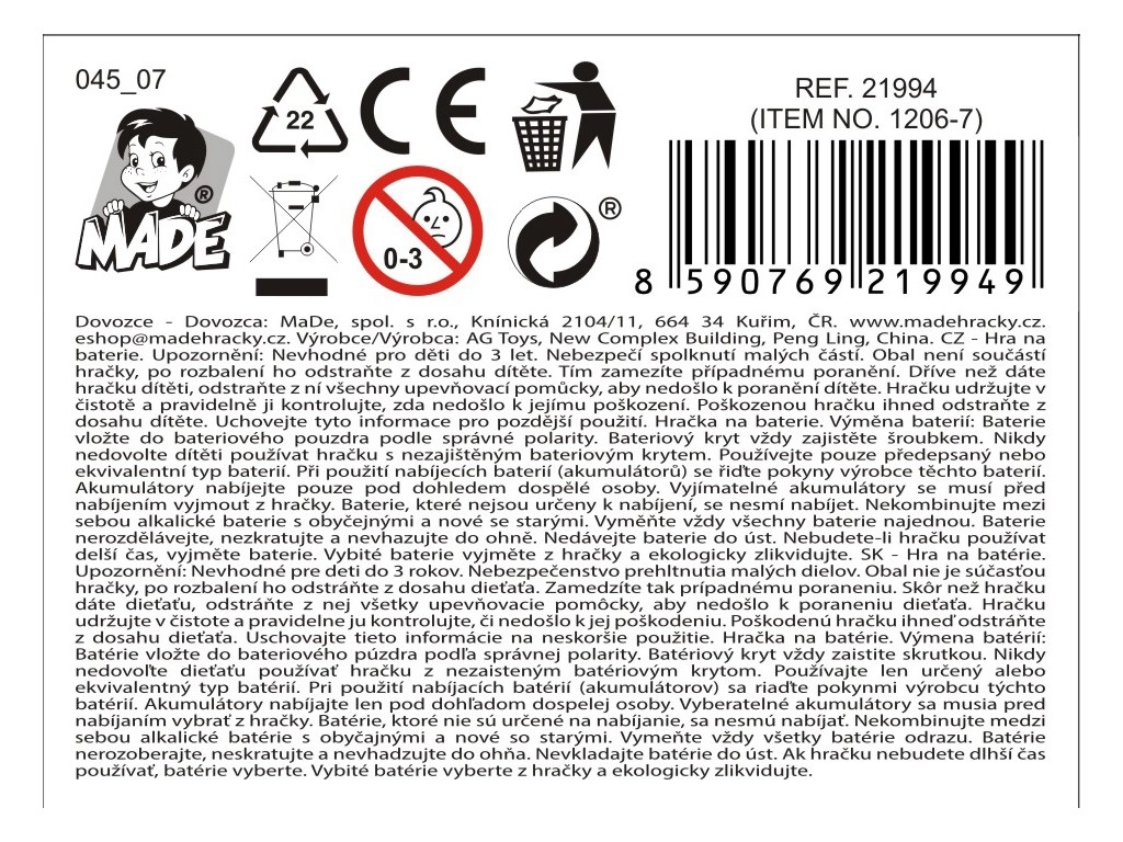 L’emballage comprend un jouet en plastique dans une boîte pratique. Nécessite 3 piles AAA (non incluses) pour la mise en marche.